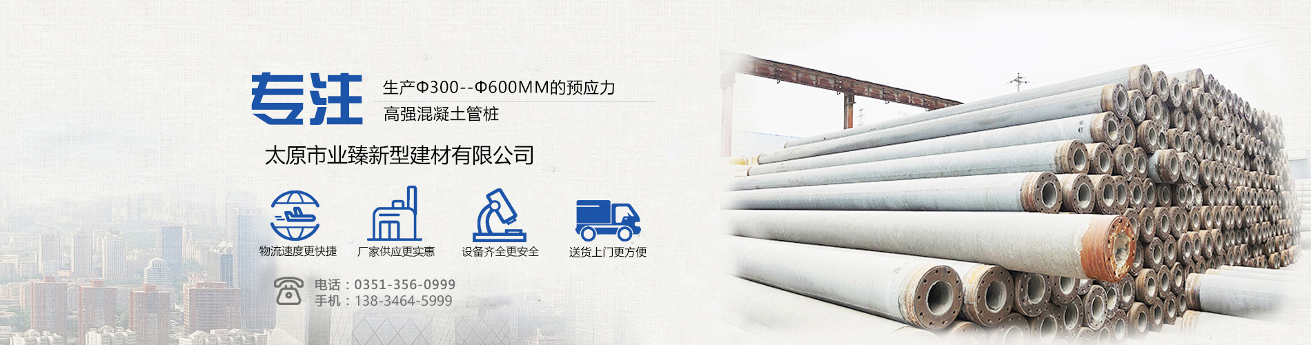 業(yè)臻,專(zhuān)注預(yù)應(yīng)力管樁、水泥排水管、方樁、混凝土加氣磚等建筑材料研發(fā)生產(chǎn),質(zhì)優(yōu)價(jià)廉,值得信賴(lài)!